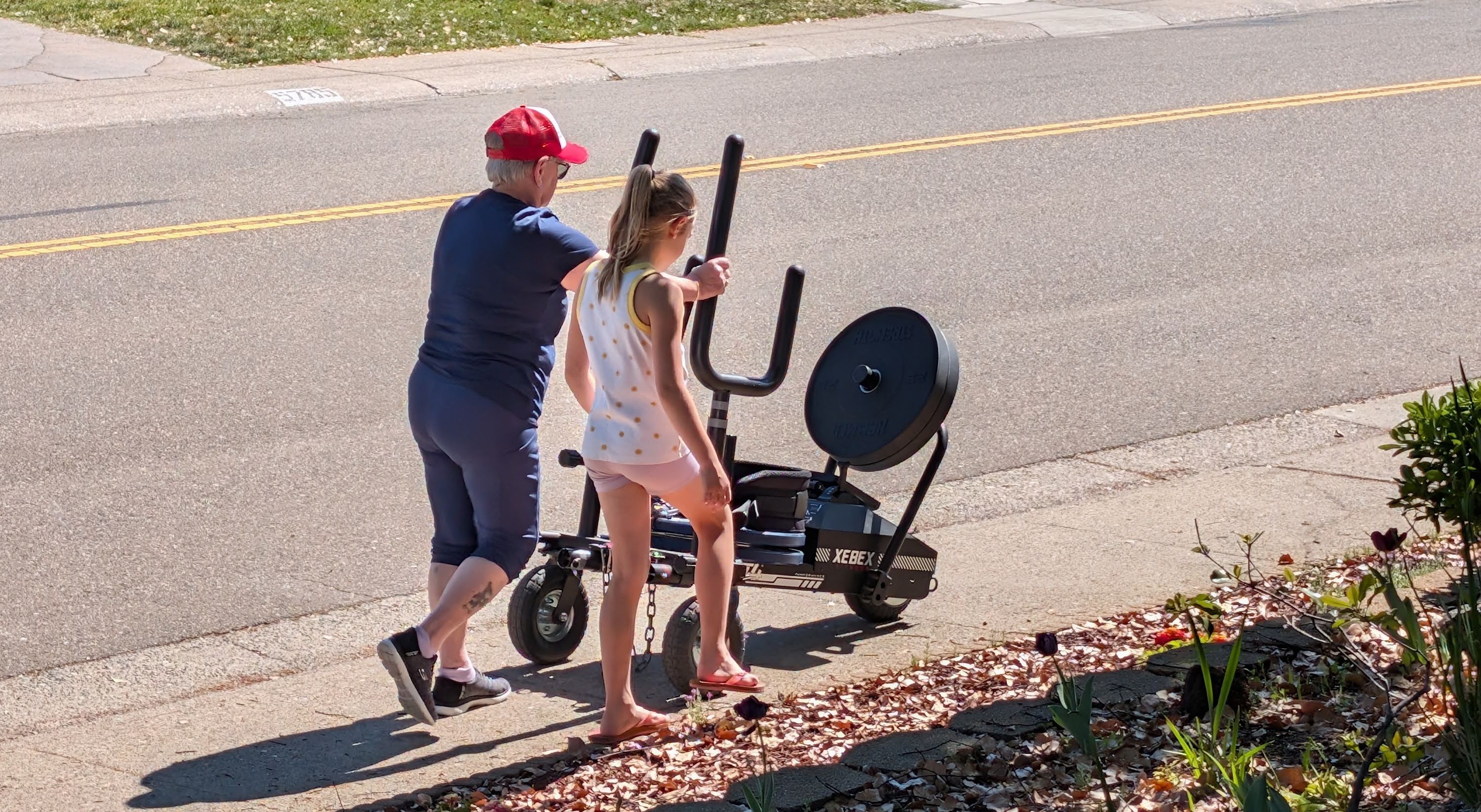 With that, Audrey is her “trainer”. She is helping get the sled set up, helping with her form on a number of exercises, she even had ideas this week on how we could help strengthen her forearms without hurting her arthritic hand.